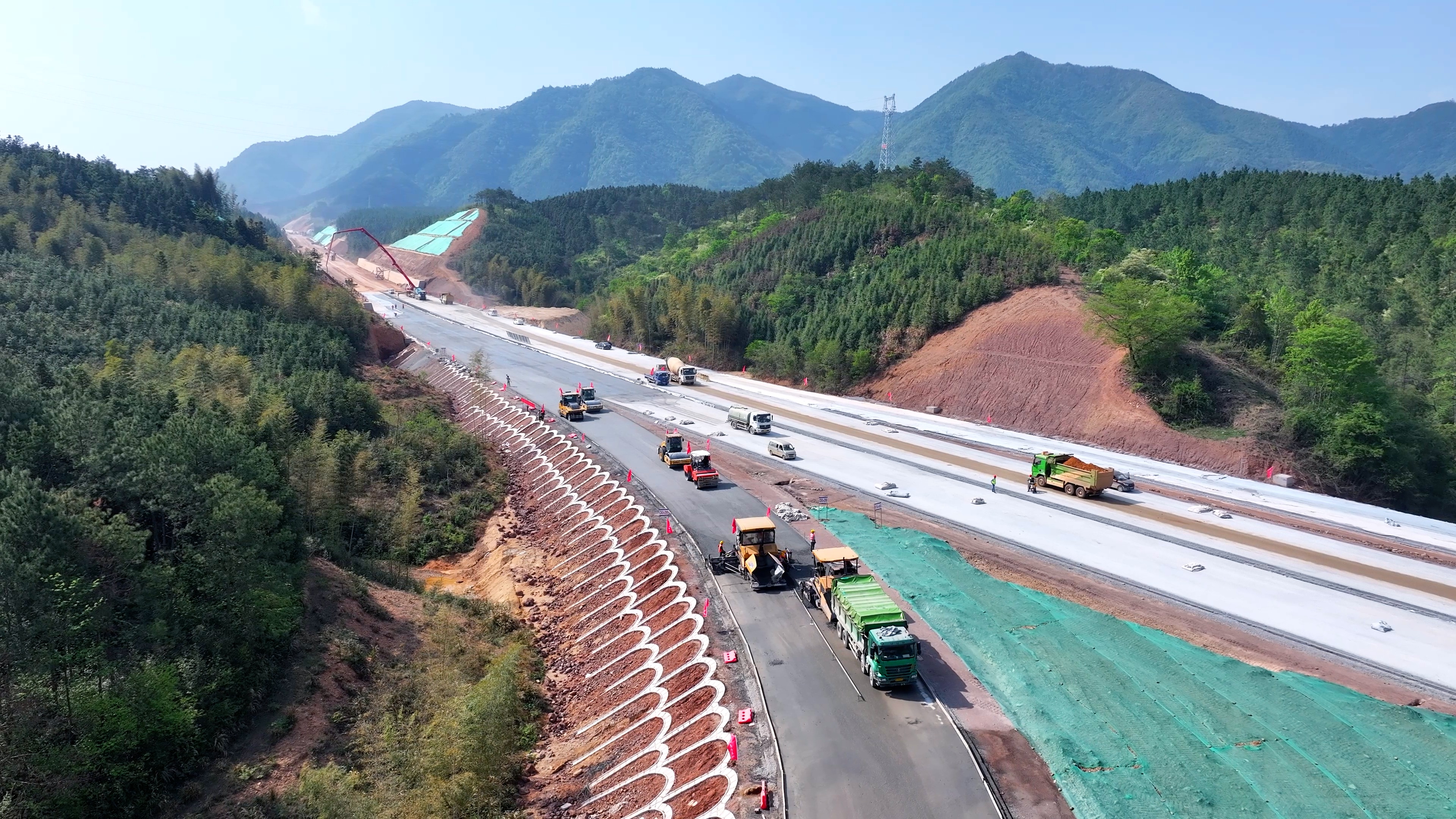 在臺州市三門縣,甬臺溫高速三門聯絡線公路項目第TJ02標段的建設者們正在進行邊坡施工,“本標段橋梁、隧道工程施工已全部完成,路基工程施工接近尾聲。”安徽建工路橋甬臺溫高速三門聯絡線公路項目第TJ02標段項目總工何振捷介紹。