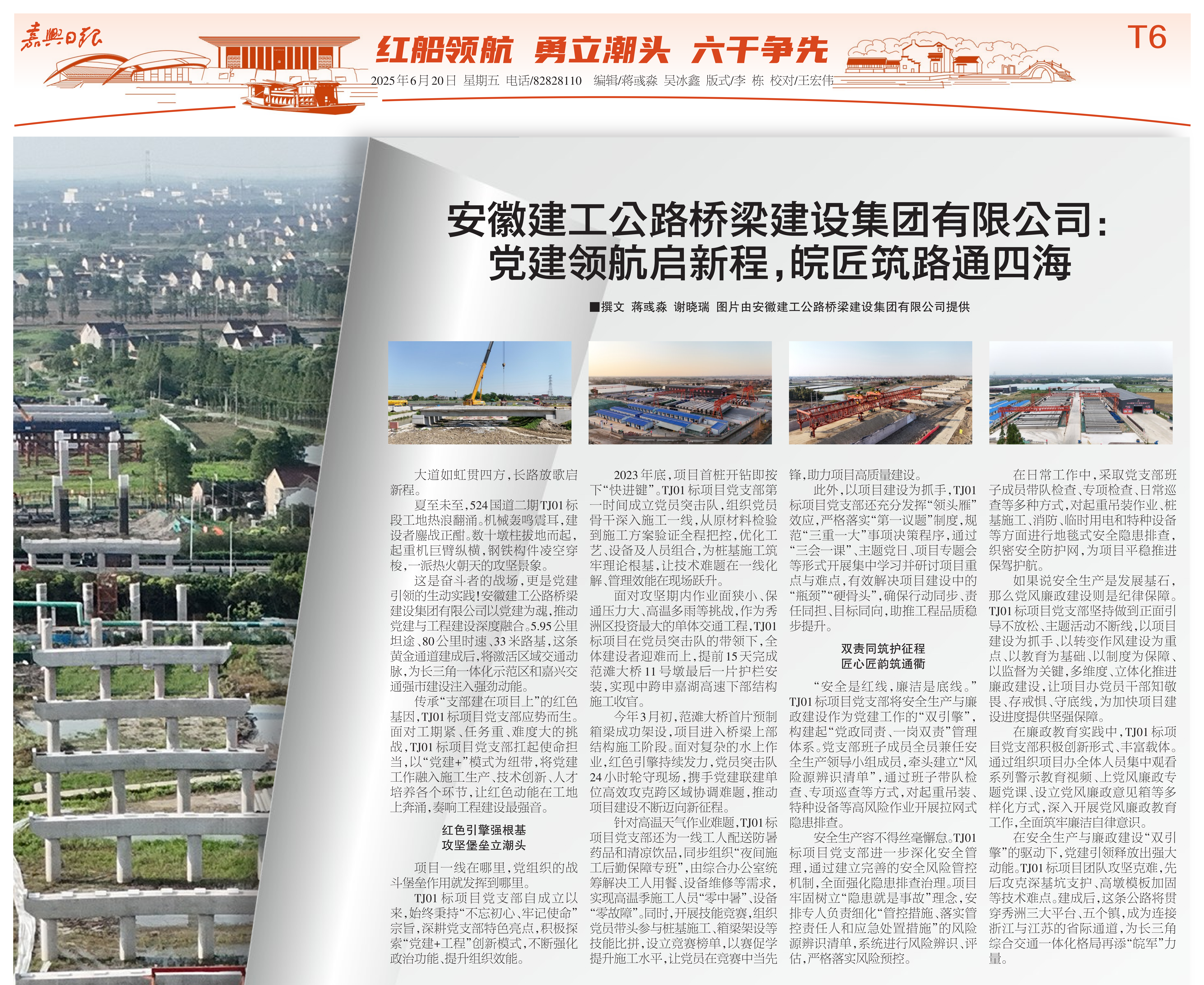 【名媒聚焦】嘉興日報:安徽建工公路橋梁建設集團有限公司——黨建領航啟新程,皖匠筑路通四海