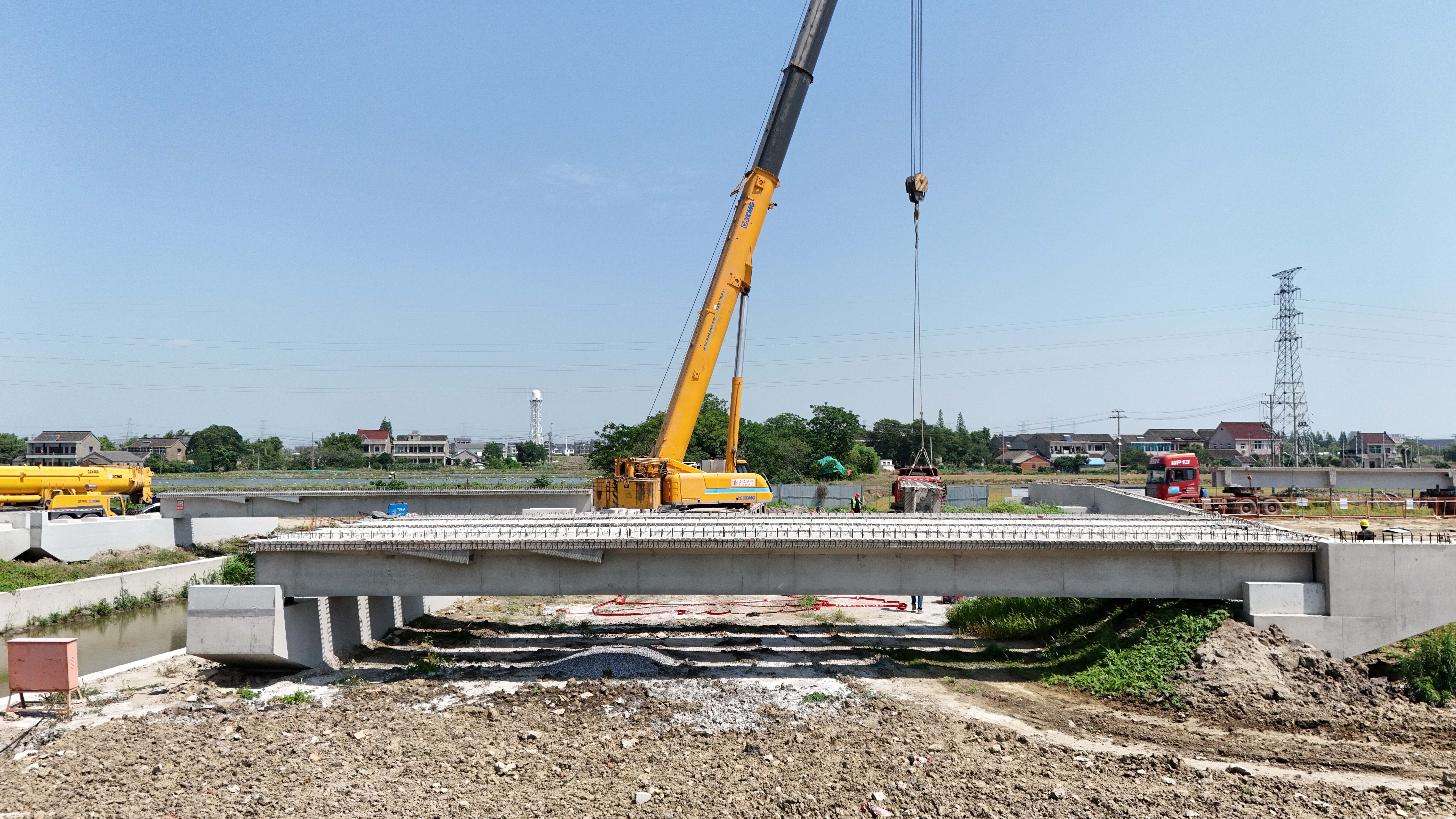 面對60余天攻堅期內作業面狹小、保通壓力大、高溫多雨等重重挑戰,作為嘉興秀洲區投資最大的單體交通工程,524國道TJ01標項目在黨員突擊隊的帶領下,全體建設者迎難而上,提前15天完成范灘大橋11號墩最后一片護欄安裝,順利實現中跨申嘉湖高速下部結構施工收官。