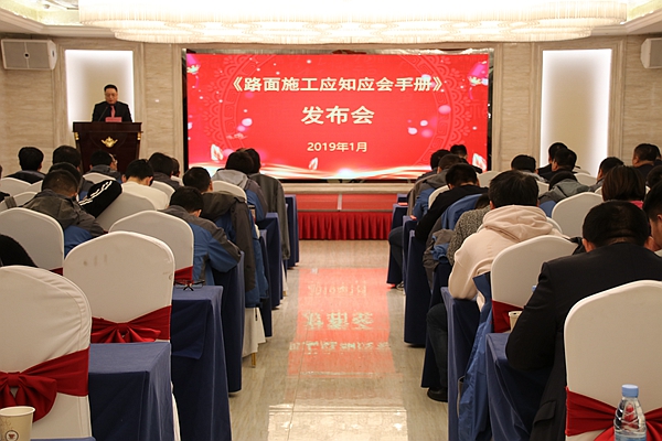 1月16日下午,由路面公司主持編制的《路面施工應知應會手冊》發布會在肥順利召開。公司總經理助理、路面公司總經理江仲明,公司副總工程師、總師辦主任劉曉晗共同為與會人員發放《手冊》。路面公司總工程師曹祝林致發布詞,向與會人員回顧了《手冊》的編制背景、歷程和意義。