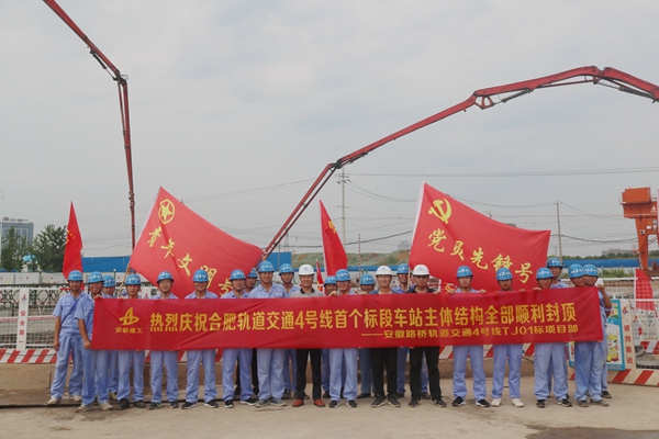 合肥軌道交通4號線首個標段內(nèi)車站主體結(jié)構(gòu)全部順利封頂