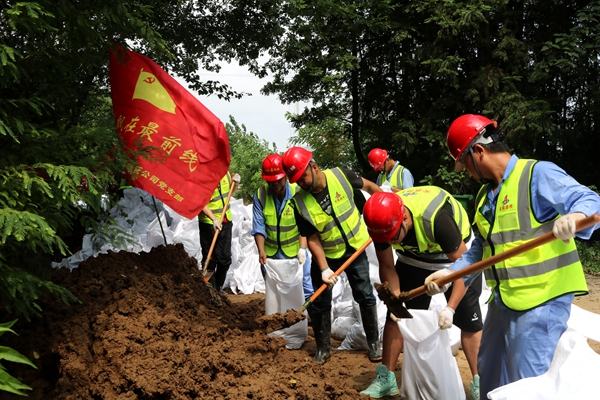 在搶險救援一線,黨員先鋒隊、青年突擊隊的旗幟高高飄揚,路面公司領導班子帶隊奮戰一線,揮鍬挖土,裝袋筑堤。經過連續24小時的奮戰,最終筑起一道“安全堤壩”。