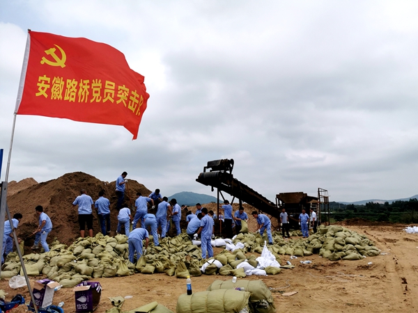 【抗洪搶險進行時】安徽路橋環湖大道杭埠河抗洪搶險隊筑壩固堤連續作戰超30小時