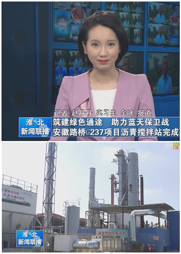 8月31日晚,《淮北新聞聯播》欄目以《筑建綠色通途 助力藍天保衛戰》為題,報道了安徽路橋公司G237項目順利完成瀝青拌合站廢氣治理任務,將綠色、環保、文明施工落到實處,以實際行動助力淮北市打贏藍天保衛戰。