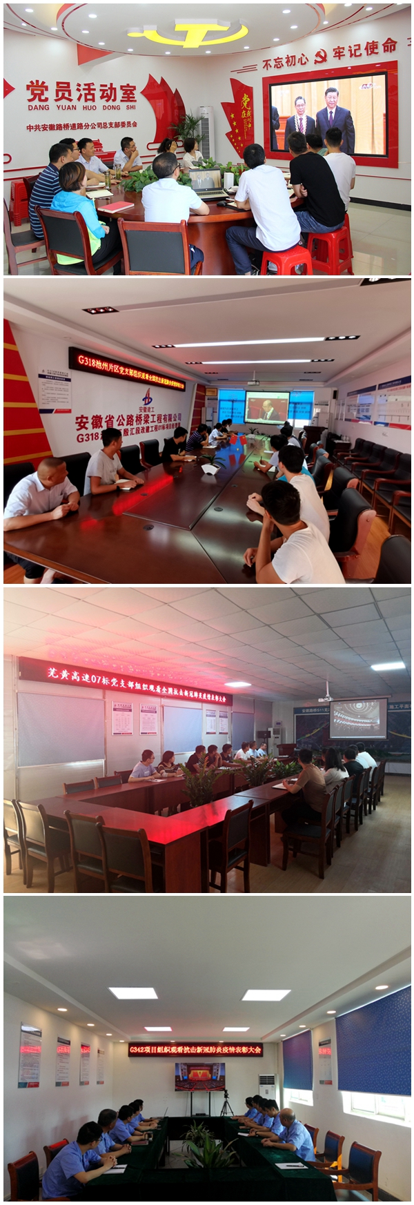 道路分公司黨總支對此次活動高度重視,提前作出統一部署,提出明確要求。過程中,大家隨會議一同進行奏唱國歌、向逝者默哀;全程認真看、仔細聽、用心記;一致表示將在今后工作中,以偉大抗疫精神為指引,在本職崗位上兢兢業業干事、踏踏實實奮斗,搶抓當前晴好天氣窗口期,強力推進工程建設,確保完成全年目標任務。