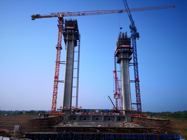 在主橋塔柱施工過程中,項目部始終堅持任務不減、目標不變、標準不降的總基調,堅持質量與安全齊抓,內業(yè)與外業(yè)并重的工作原則,相繼克服了超高作業(yè)安全隱患大、交叉施工環(huán)境復雜等一系列難題。主橋塔柱順利封頂標志著大橋塔柱主體工程結束,全面步入斜拉索施工階段。