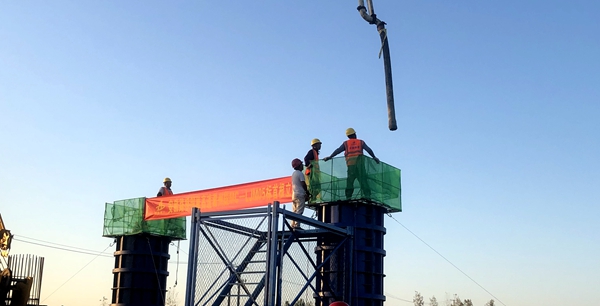 池河大橋作為項目控制性工程,橋梁全長550米,原定計劃搭設漫水橋作為便橋。受7月份連續強降雨影響,池河水位全面上漲,無法進行漫水橋施工,且河兩岸均為軟基,對樁基施工影響極大。項目及時調整思路,創造條件,調集路基隊伍搶修池河大橋段便道,從兩頭向中間推進,借助部分村村通公路,有效保障了施工機械和罐車通行。為確保鋼筋籠制作進度,對樁徑和樁長一致的部分優先施工。截至10月10日,池河大橋施工已累計完成93%,目前已轉入橋梁承臺及墩柱施工階段。