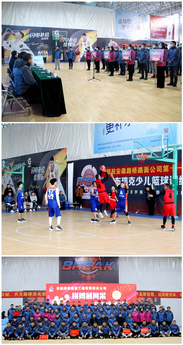 為豐富職工文化生活,增進職工溝通交流,促進企業文化建設,提高團隊凝聚力,12月30日至31日,安徽路橋路面公司第十一屆職工籃球賽在合肥布瑞克籃球館成功舉辦。公司黨委委員、紀委書記林緒坤,工會主席楊建強出席開幕式。