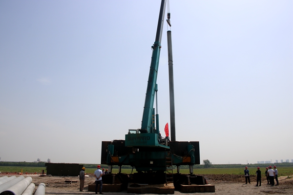5月7日上午9點58分,安徽建工鋼結構智能制造產業化基地項目1#廠房基礎第一根預制管樁試樁成功。