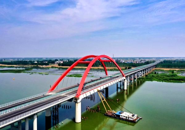 固蚌高速是安徽省縣縣通高速重點建設項目。在全省首次采用提籃系桿鋼箱拱橋施工工藝,施工技術難度大、任務重。開工以來,在公司大力支持和精心幫扶下,項目堅持以黨建為引領,克服疫情汛情等不利因素影響,圍繞中心工作,堅持高質量、高標準、嚴要求,提前3個月完工,以優(yōu)異的成績向建黨100周年獻禮。
