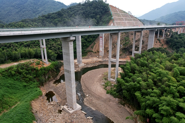 真正敢于挑戰的建設者,需要非凡的毅力和勇氣。位于標頭的徽水河大橋進場時,每一臺機械設備都“寸步難行”,每一米道路修筑都要用爆破方式挖掉硬石。他們歷經雨水、烈日的輪流考驗,立起了一排排筆直的墩柱,架起了一片片堅實的梁板,將最艱難的1公里鍛造而成。