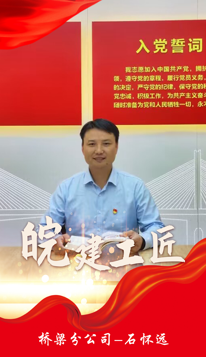 石懷遠,橋梁分公司黨總支書記、總經理。扎根工程施工一線17年,先后參與建設六安淠史杭大橋、濟祁高速淮河特大橋等一大批省、市重點工程項目。他秉承精益求精、追求卓越的工匠精神,解決了一個個施工技術難題,培養了一批公路和橋梁工程施工領域專業技術人才,用實際行動和出色的工作業績踐行了勞模精神、勞動精神、工匠精神。