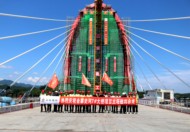 史河(金寨段)防洪提升工程-7#防汛大橋項(xiàng)目主塔順利合龍