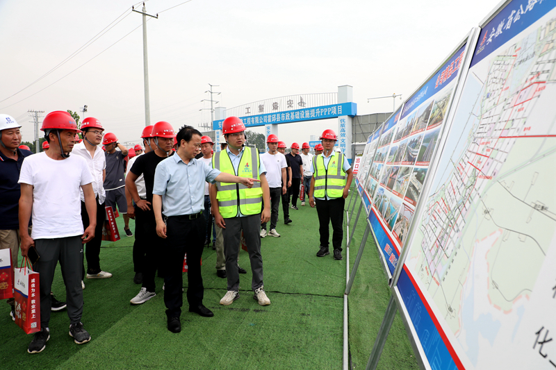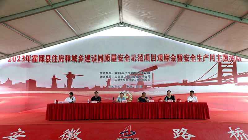 6月17日上午,2023年霍邱縣質量安全示范項目觀摩會暨安全生產月主題活動在安徽路橋霍邱縣市政基礎設施提升PPP項目水門塘路施工現場舉行。本次觀摩會由霍邱縣住房和城鄉建設局主辦,安徽建工集團股份有限公司和安徽省公路橋梁工程有限公司聯合承辦。霍邱縣住房和城鄉建設局局長田從戰、副局長余勇出席活動。