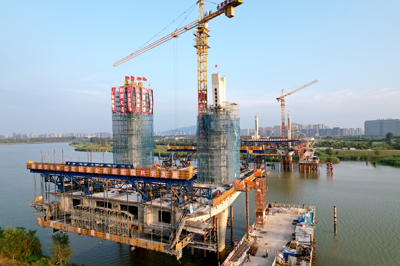 G206-03標渦河八橋主塔全部封頂 發布時間:2023年09月11日 來源:橋梁分公司 發布人:黨委工作部 作者:朱柏文 瀏覽:3704次 9月9日,G206-03標項目渦河八橋北岸14#墩左幅主塔順利封頂。至此,大橋南北兩岸4個主塔全部封頂,標志著該項目主橋施工再次取得突破性進展,為后續的主梁懸澆和斜拉索掛設施工打下了堅實基礎。