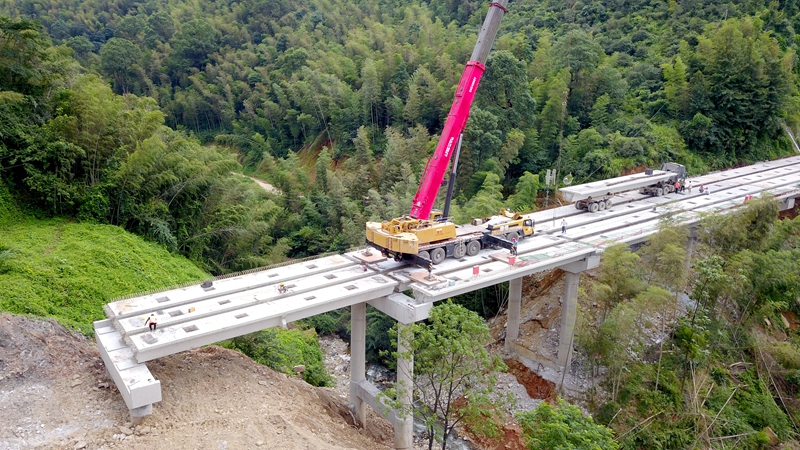 據(jù)了解,楊公山大橋位于遂川縣巾石鄉(xiāng)境內(nèi),分為右線和右外線,右線橋長(zhǎng)140米,右外線橋長(zhǎng)180米,共計(jì)60多片箱梁。為確保該橋梁板順利架設(shè),項(xiàng)目部針對(duì)施工特點(diǎn)、難點(diǎn)和重點(diǎn)及時(shí)做好安全技術(shù)交底工作,在施工過(guò)程中,項(xiàng)目部動(dòng)態(tài)優(yōu)化資源配置,采用了3臺(tái)炮車(chē)及2臺(tái)吊車(chē)同時(shí)進(jìn)行運(yùn)輸和架設(shè)作業(yè),克服了工期緊、運(yùn)梁路線長(zhǎng)等不利因素影響,順利地完成了架設(shè)任務(wù)。
