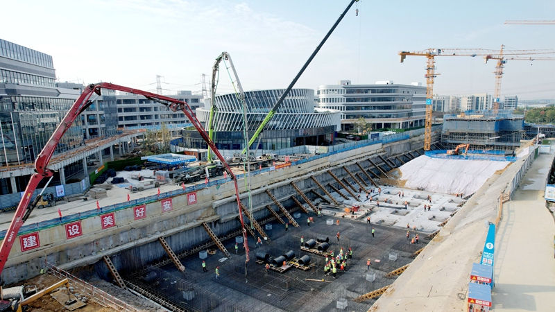 11月3日,桃花科創產業園項目二期二標段首塊主樓筏板順利澆筑,標志著項目二期建設全面進入主體結構施工階段。
