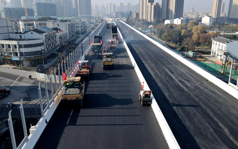 【百日攻堅大會戰】金寨南路快速化改造(望水路-站前路)項目主橋瀝青路面開始攤鋪