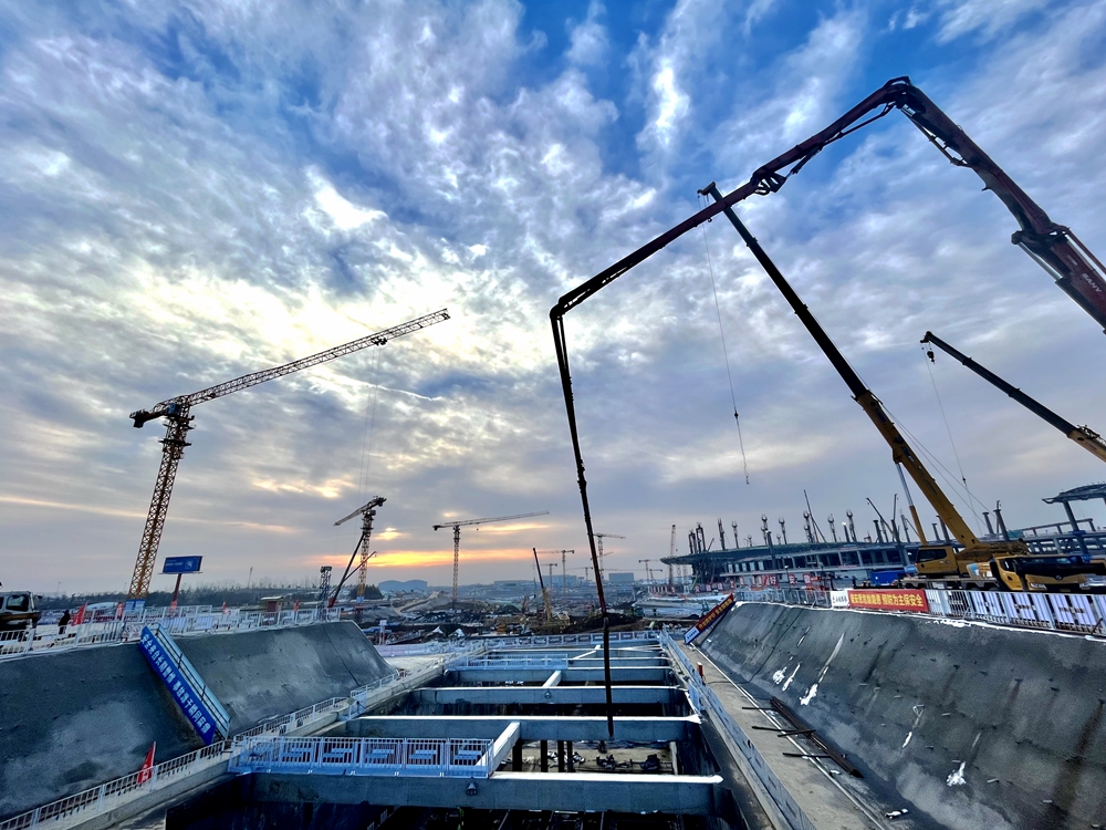 12月23日下午,合肥新橋國際機場綜合交通中心項目歷經約10小時的鏖戰,圓滿完成項目地鐵S1線首塊底板澆筑。