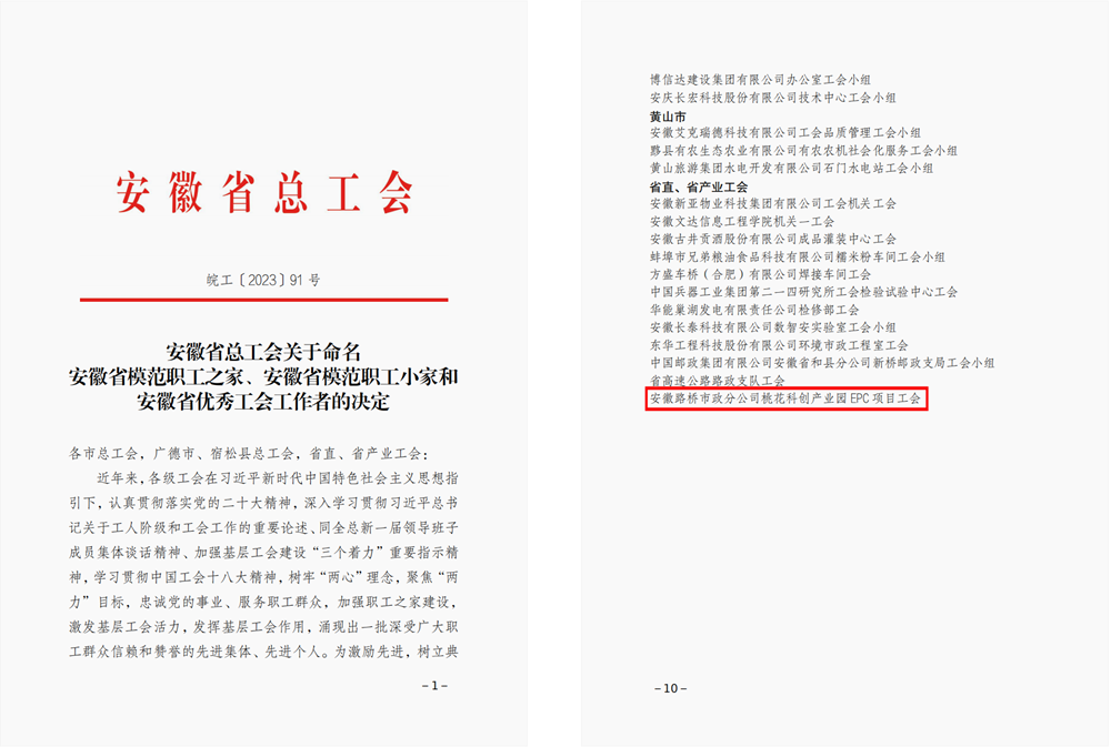 桃花科創產業園EPC項目工會榮獲“安徽省模范職工小家”稱號 發布時間:2024年01月02日 來源:市政分公司 發布人:黨委工作部 作者:季晨 瀏覽:3110次 近日,安徽省總工會公布《安徽省總工會關于命名安徽省模范職工之家、安徽省模范職工小家和安徽省優秀工會工作者的決定》,桃花科創產業園EPC項目工會榮獲“安徽省模范職工小家”榮譽稱號。 近年來,公司始終把項目作為“家文化”建設的重要著力點,以“講好家的故事,辦好家的活動,服務家的職工”作為中心點,以人文關懷、打造品牌、助力生產為創新點,切實把建家活動打造為增強項目凝聚力、促進項目和諧發展的重要載體,努力把項目打造成職工的“溫馨之家”、“和諧之家”、“責任之家”、“平安之家”、“成長之家”、“廉潔之家”。