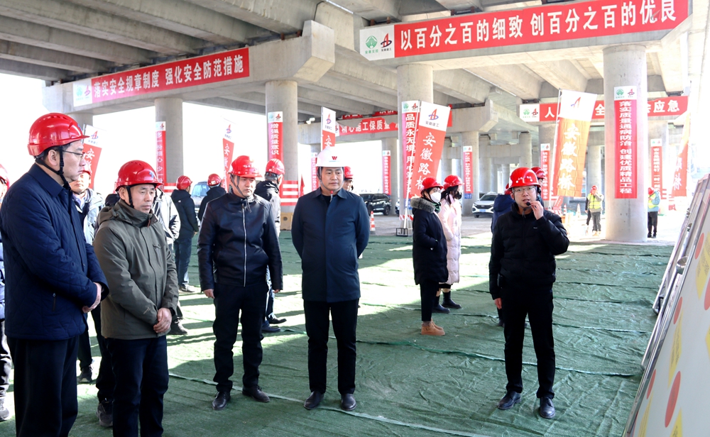 在阜南南互通施工現場,在項目負責人的講解引領下,觀摩團詳細了解了項目橋梁標準化建設、安全管理、環??刂萍捌焚|工程建設等情況,對項目管理水平和取得的一系列成績予以高度肯定。