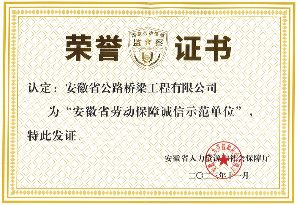 公司榮獲安徽省勞動(dòng)保障誠(chéng)信示范單位