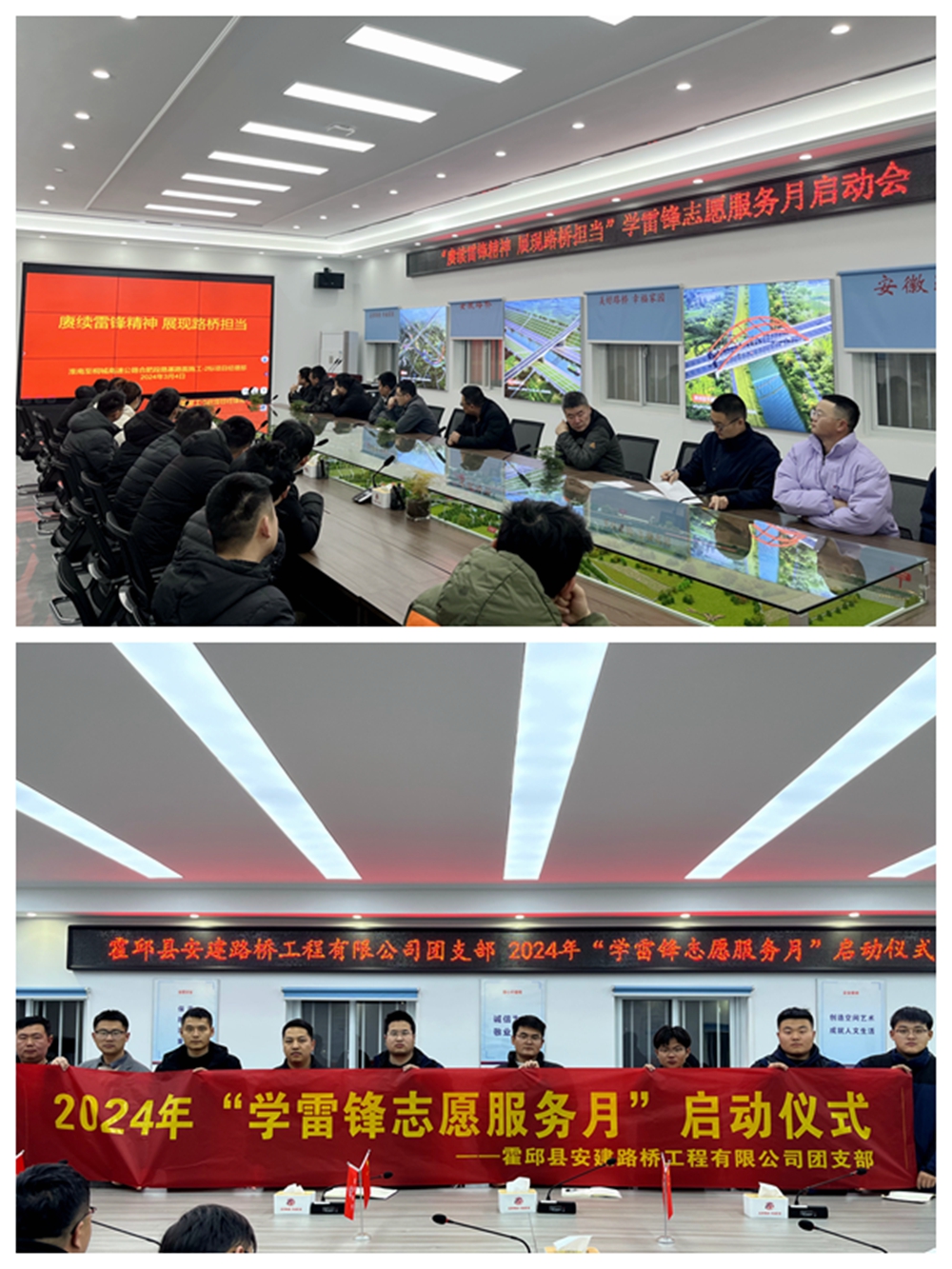 淮桐高速合肥段路基路面施工-2標項目、霍邱縣安建路橋工程有限公司舉行“學雷鋒志愿服務月”啟動儀式,號召全體職工以雷鋒為榜樣,積極奉獻、開拓進取,在項目建設、社會服務中貢獻力量。