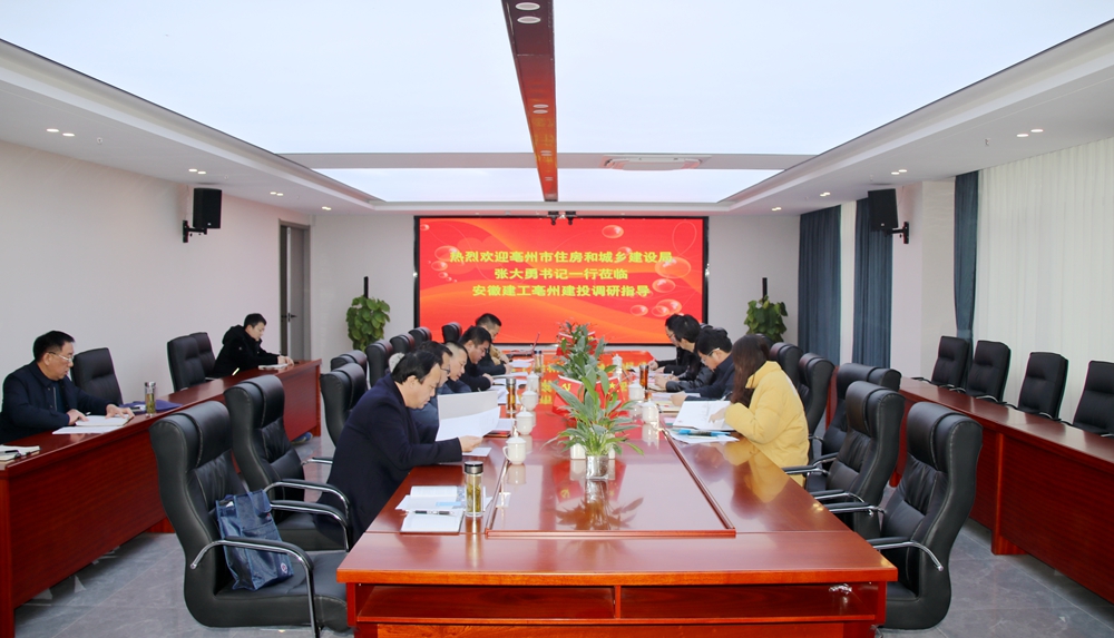 亳州市住房和城鄉建設局黨組書記張大勇到安徽建工亳州建投調研 發布時間:2024年03月07日 來源:建設公司 發布人:黨委組織部(人力資源部、黨委宣傳部) 作者:褚祥 瀏覽:3996次 3月5日上午,亳州市住房和城鄉建設局黨組書記張大勇、副局長李彬一行到安徽建工亳州建投調研,詳細了解亳州建投業務范圍、發展規劃等情況,并就深化雙方合作提出希望。