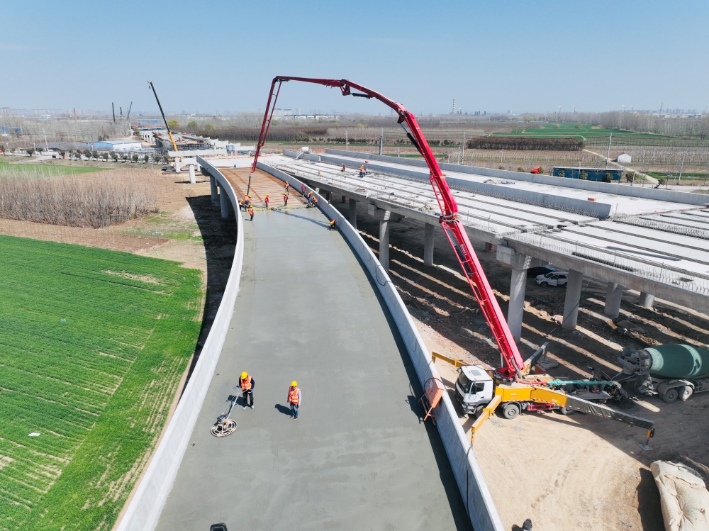 當天,記者在徐淮阜高速(淮北段)規(guī)劃玉蘭大道分離立交施工現場看到,工程建設者們正在進行橋面系施工,有的在捆扎鋼筋,有的在進行焊接?!肮て诰o、任務重,我們必須全力沖刺?!卑不章窐蛐旎锤犯咚伲ɑ幢倍危┞坊访鏄斯こ滩坎块L張海峰說,為確保施工進度,公司列出了詳細施工進度表,倒排工期,高效合理安排勞務隊伍。