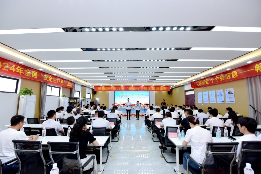 6月4日下午,安徽路橋第九屆“安康杯”安全知識(shí)競(jìng)賽成功舉辦。此次競(jìng)賽以“安全生產(chǎn)提品質(zhì) 科學(xué)管理促安康”為主題,旨在深化安全生產(chǎn)理念,提升員工安全素質(zhì)。安徽省建設(shè)建材工會(huì)(省住建廳文明辦)四級(jí)調(diào)研員邱亮出席活動(dòng)并作點(diǎn)評(píng)講話,安徽省建設(shè)工程質(zhì)量與安全協(xié)會(huì)副秘書長(zhǎng)趙永生出席活動(dòng),公司黨委書記、董事長(zhǎng)錢申春致辭。建工控股工程管理部(安全監(jiān)察局)副部長(zhǎng)胡曉東,公司領(lǐng)導(dǎo)韋秀剛、石懷遠(yuǎn)及所屬各單位有關(guān)負(fù)責(zé)同志、職工代表共計(jì)80余人現(xiàn)場(chǎng)觀看比賽。