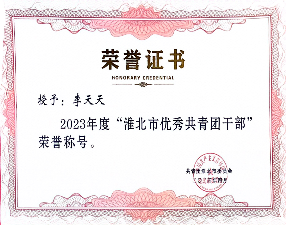 近日,從共青團淮北市委員會傳來消息,公司承建的徐淮阜高速淮北段項目榮獲“淮北青年五四獎章”集體,項目職工李天天、陶青松分別榮獲“淮北市優秀共青團干部”和“淮北市優秀共青團員”稱號。