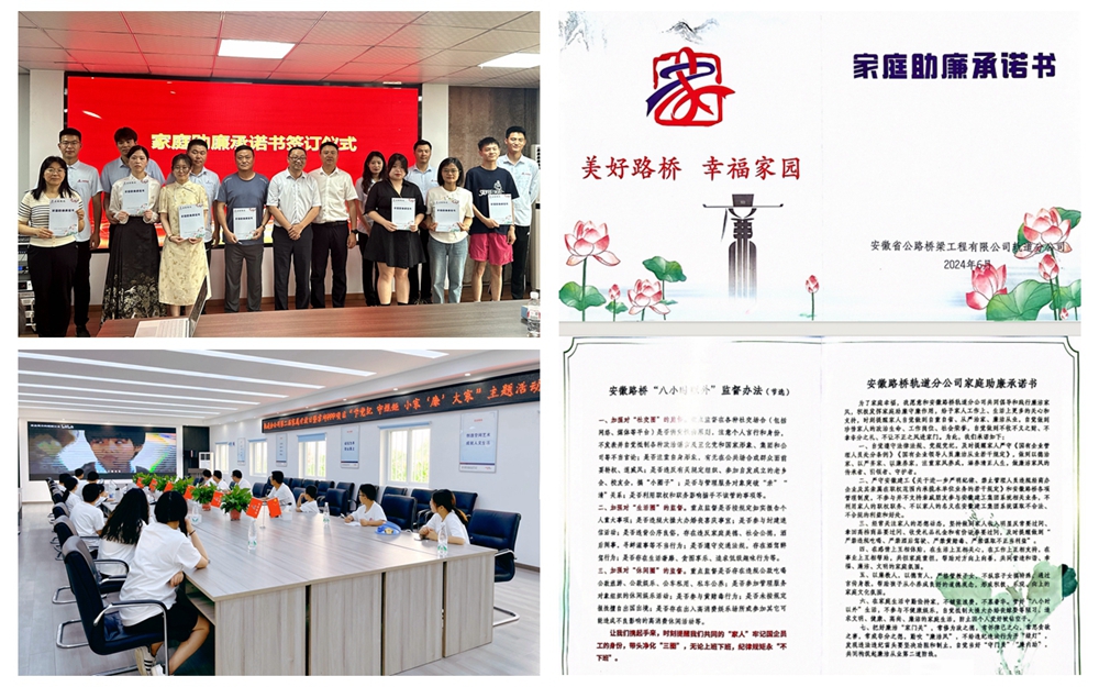 在各項目家庭助廉活動中,員工和家屬共同觀看了《我是張清廉》、《清廉潤家風,當好廉內助》、《爸爸的話》等廉潔微電影和公司《寄語送清風 廉潔伴我行》欄目優秀作品。同時,各項目還向每個職工家庭發放了《家屬助廉承諾書》,大家踴躍寫下承諾,表示要和分公司一道擰緊廉潔“安全閥”,幫助我們共同的家人走正道、揚正氣,當好一名廉潔自律的路橋人。