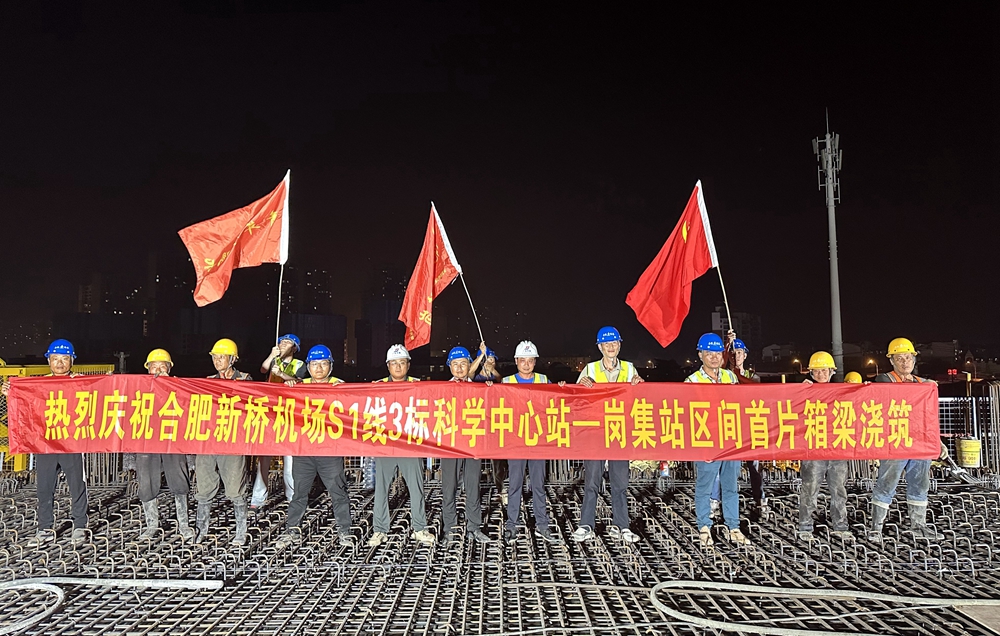 【路橋“競”行時】合肥新橋機場S1線3標科學中心站-崗集站區間首跨箱梁完成澆筑