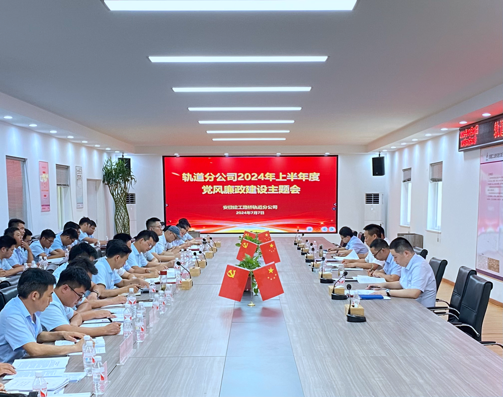 7月7日上午,軌道分公司黨總支召開2024年度上半年黨風廉政建設會議暨黨紀學習教育主題黨課報告會。分公司領導班子,所屬各項目經理、黨支部書記、紀檢委員、合約部和財務部負責人等參加會議。