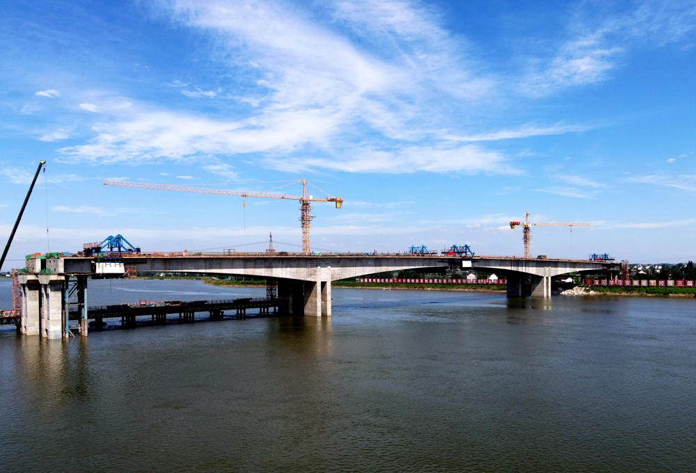 姑溪河特大橋全長1179米,為項目關鍵控制性工程。此次合龍的主橋左幅中跨全長287米。施工過程中,項目嚴把安全關、質量關,確保各項工序緊密銜接,各項控制指標符合規范要求。目前,姑溪河特大橋主橋右幅正加速建設,確保如期實現主橋合龍。