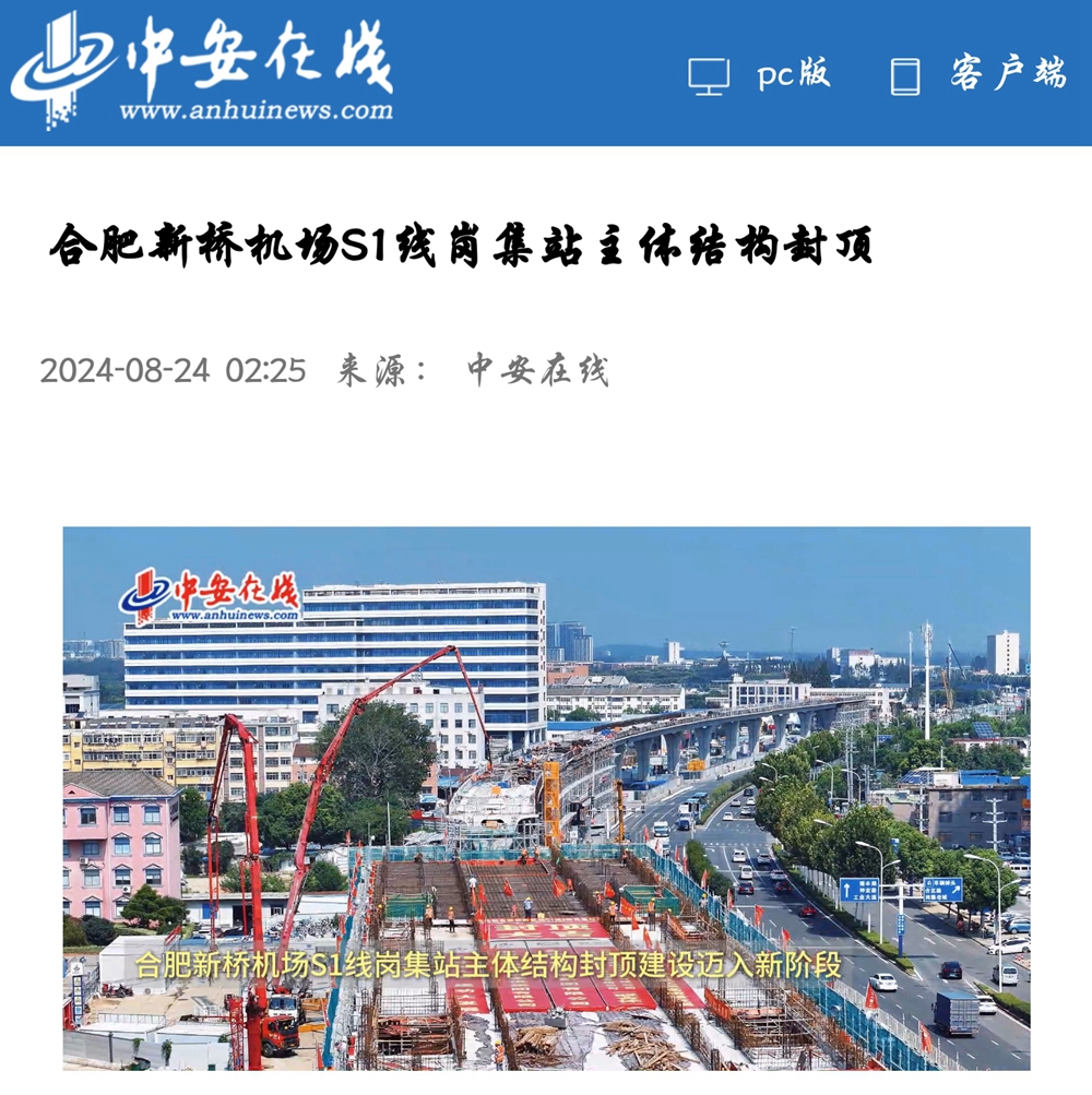 【名媒聚焦】央廣網(wǎng)、中安在線、安徽日報等主流媒體聚焦合肥新橋機場S1線項目崗集站主體結(jié)構(gòu)封頂