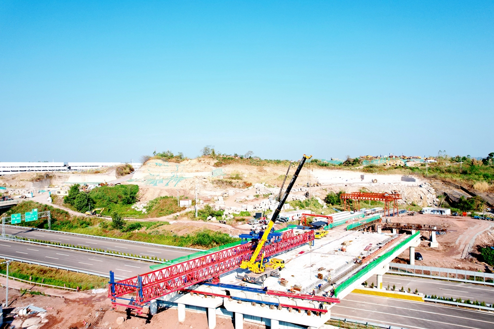 9月12日,公司在渝首個EPC項(xiàng)目——重慶銅梁項(xiàng)目關(guān)鍵控制性節(jié)點(diǎn)工程金浦大道銅安高速上跨橋箱梁架設(shè)完成,較計劃工期提前一個月。