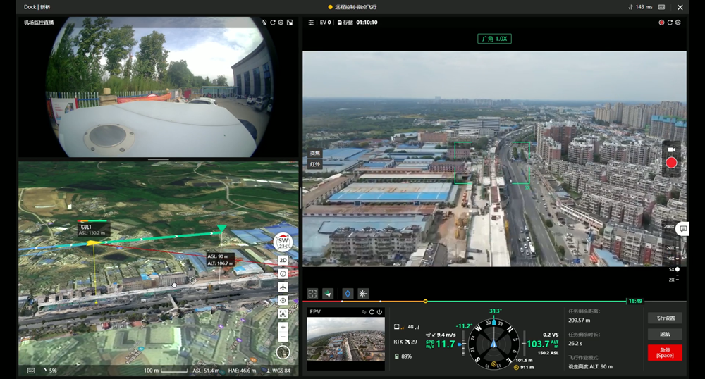 質(zhì)量是工程的生命線。無人機(jī)巡檢系統(tǒng),為質(zhì)量安全擦亮智慧“雙眼”?!拔覀儼褵o人機(jī)巡檢與GIS+BIM技術(shù)相結(jié)合,對(duì)項(xiàng)目全線每月更新GIS數(shù)據(jù),形成虛實(shí)互聯(lián)的電子沙盤,真實(shí)還原現(xiàn)場工程建設(shè)場景?!庇嗝骶榻B,操控人員僅需遠(yuǎn)程下達(dá)巡檢任務(wù),即可實(shí)現(xiàn)起飛、巡檢、降落、回收、充電、數(shù)據(jù)上傳等一系列自動(dòng)操作,同時(shí)集成測量分析、重要部位重點(diǎn)標(biāo)注等功能,自動(dòng)巡檢無人值守、自動(dòng)作業(yè),還支持夜間紅外巡邏,“方寸屏幕間即可窺見施工全線場景?!?/p>