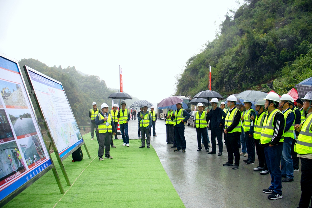 在古嶺隧道施工現場,項目負責人向觀摩人員介紹了項目概況及現場施工進展,并圍繞四新技術應用、安全生產管理、隧道標準化施工等方面作了經驗分享。