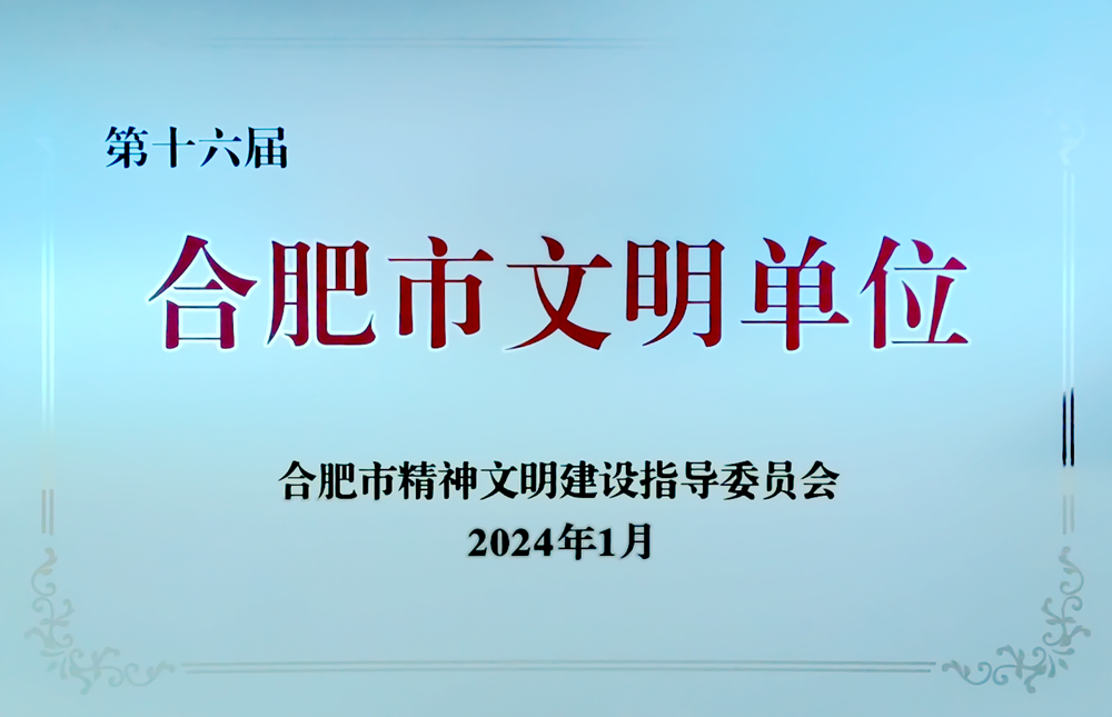 公司榮獲第十六屆合肥市文明單位稱號