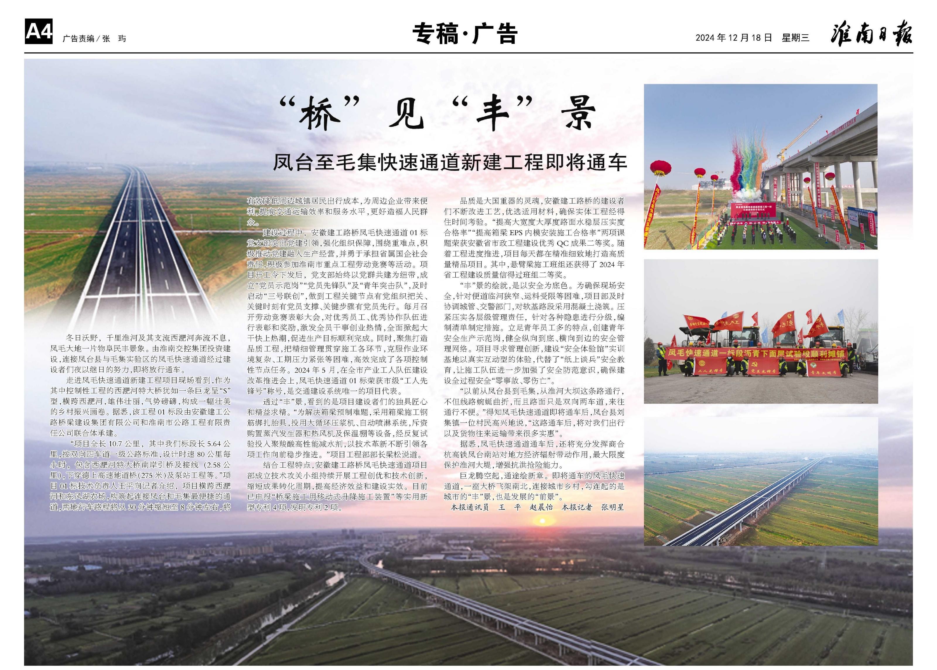 【名媒聚焦】淮南日報(bào):“橋”見“豐”景——鳳臺(tái)至毛集快速通道新建工程即將通車