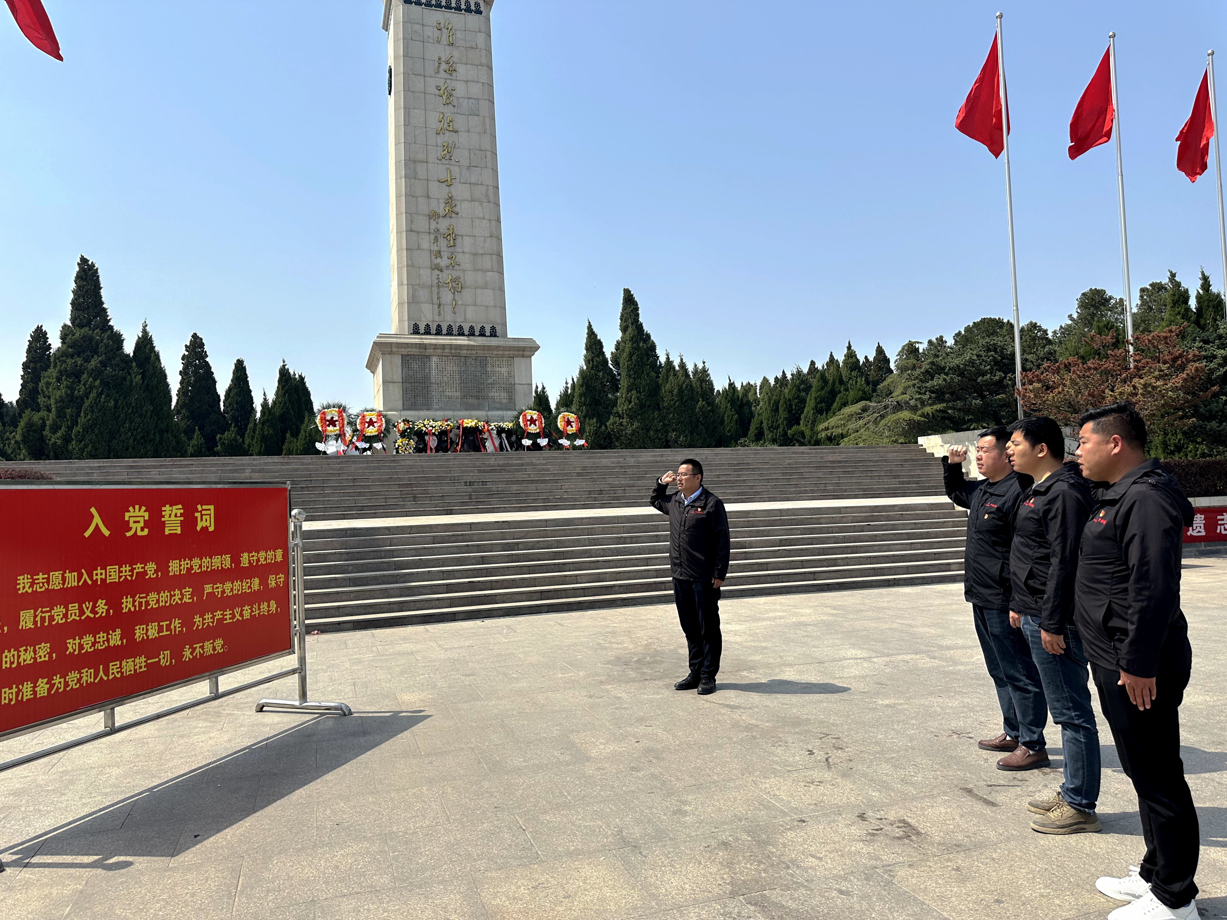 公司黨員、團(tuán)員青年及職工代表前往屬地烈士陵園開展祭掃活動。松柏蒼翠映豐碑,全體人員肅立默哀,向革命烈士紀(jì)念碑敬獻(xiàn)花籃,鞠躬致意。面對鮮紅的黨旗,黨員同志們重溫入黨誓詞。