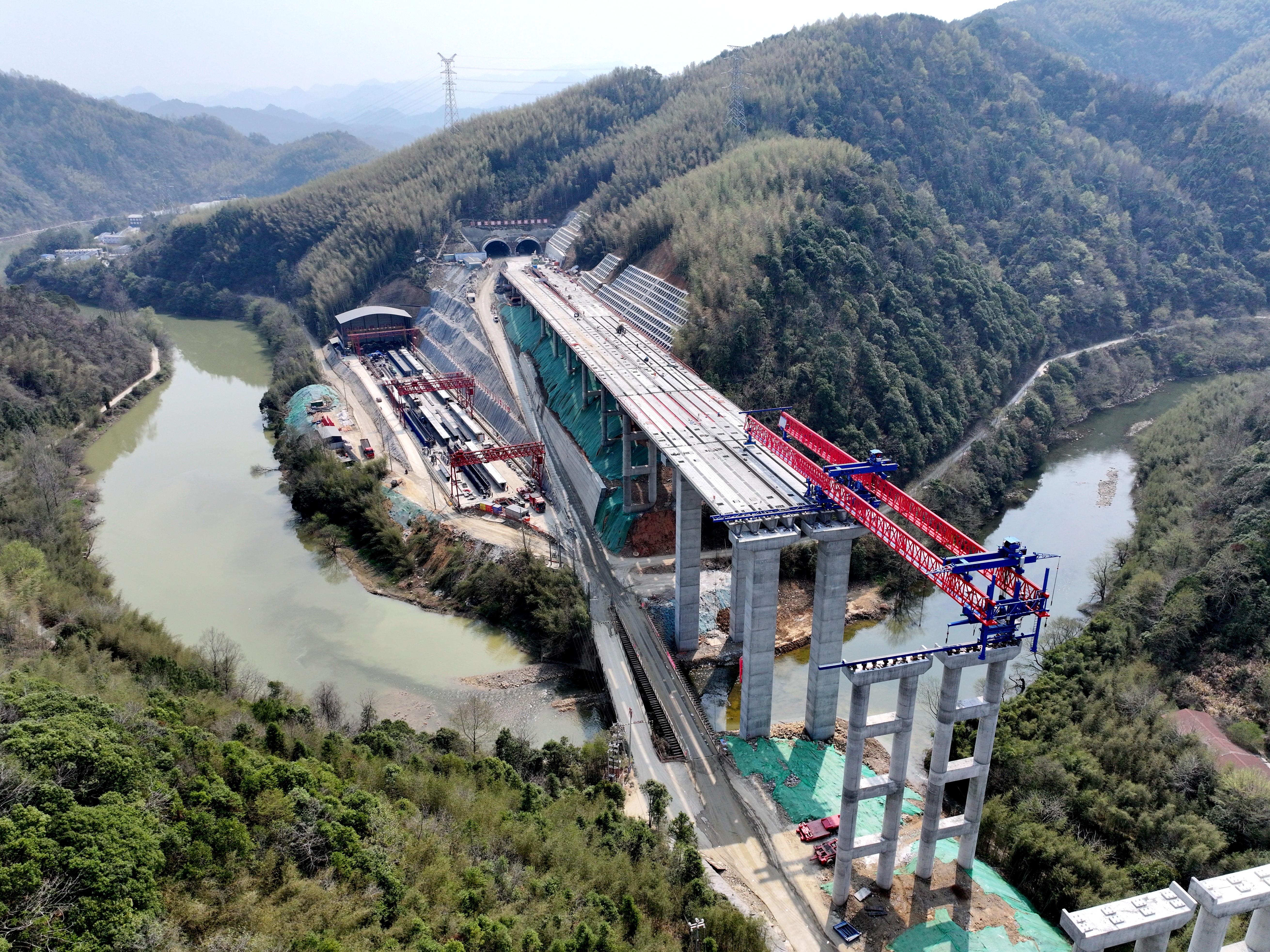 在橋梁施工方面,橫跨浣溪河的特大橋建設(shè)同樣面臨挑戰(zhàn)。為克服12%運(yùn)梁坡度帶來的困難,項(xiàng)目創(chuàng)新采用“雙主機(jī)雙制動(dòng)運(yùn)梁炮車”技術(shù),經(jīng)過多次模擬推演,成功實(shí)現(xiàn)首片40米箱梁精準(zhǔn)架設(shè)。這一突破,標(biāo)志著項(xiàng)目施工從下部結(jié)構(gòu)向上部結(jié)構(gòu)轉(zhuǎn)換,實(shí)現(xiàn)橋梁與隧道工序無縫銜接,為后續(xù)架梁作業(yè)奠定基礎(chǔ)。截至目前,項(xiàng)目路基填筑已完成98%,橋梁樁基工程全部完工,梁板預(yù)制架設(shè)進(jìn)度突破55%。