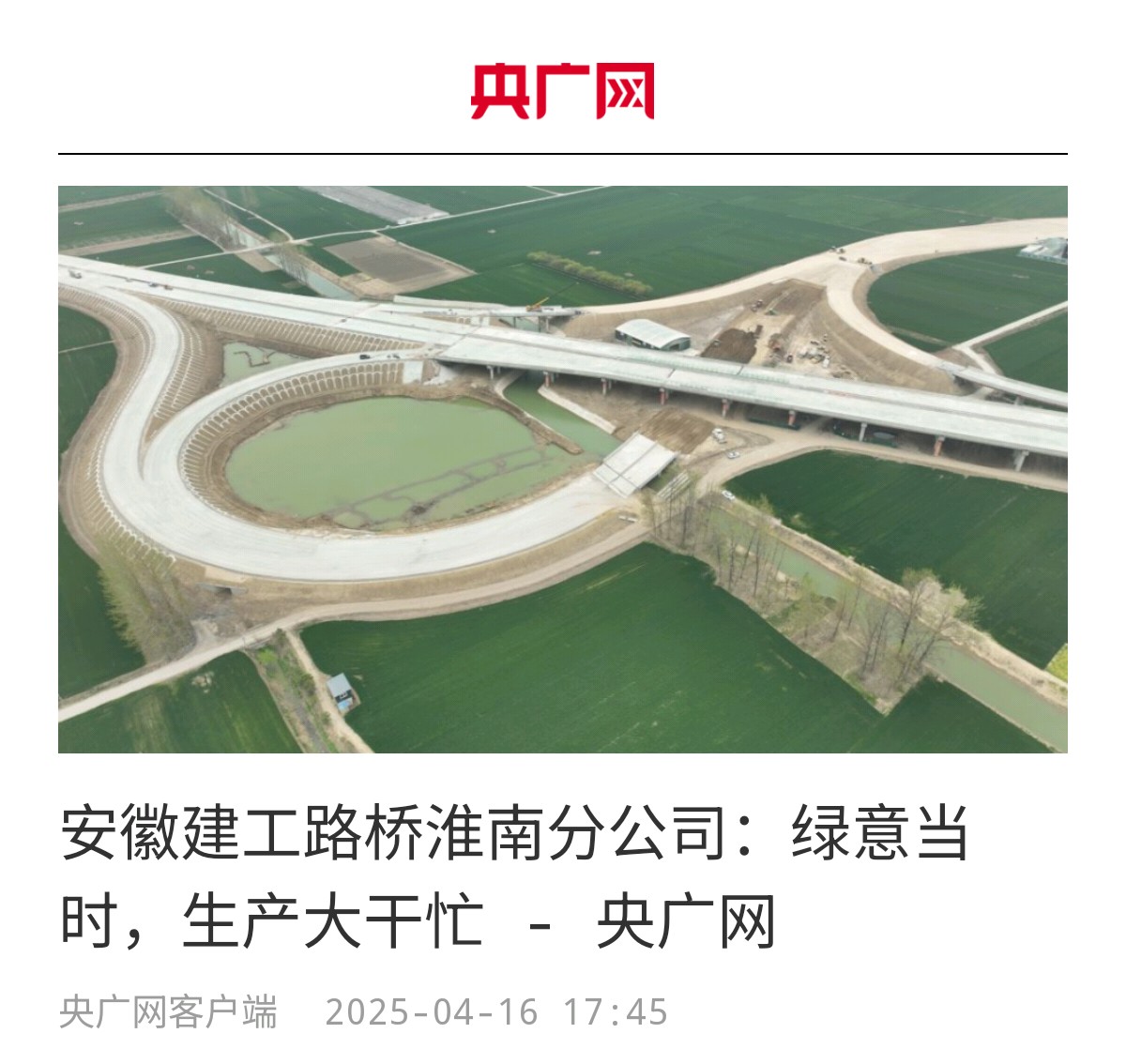 【名媒聚焦】央廣網(wǎng):安徽建工路橋淮南分公司——綠意當時,生產(chǎn)大干忙