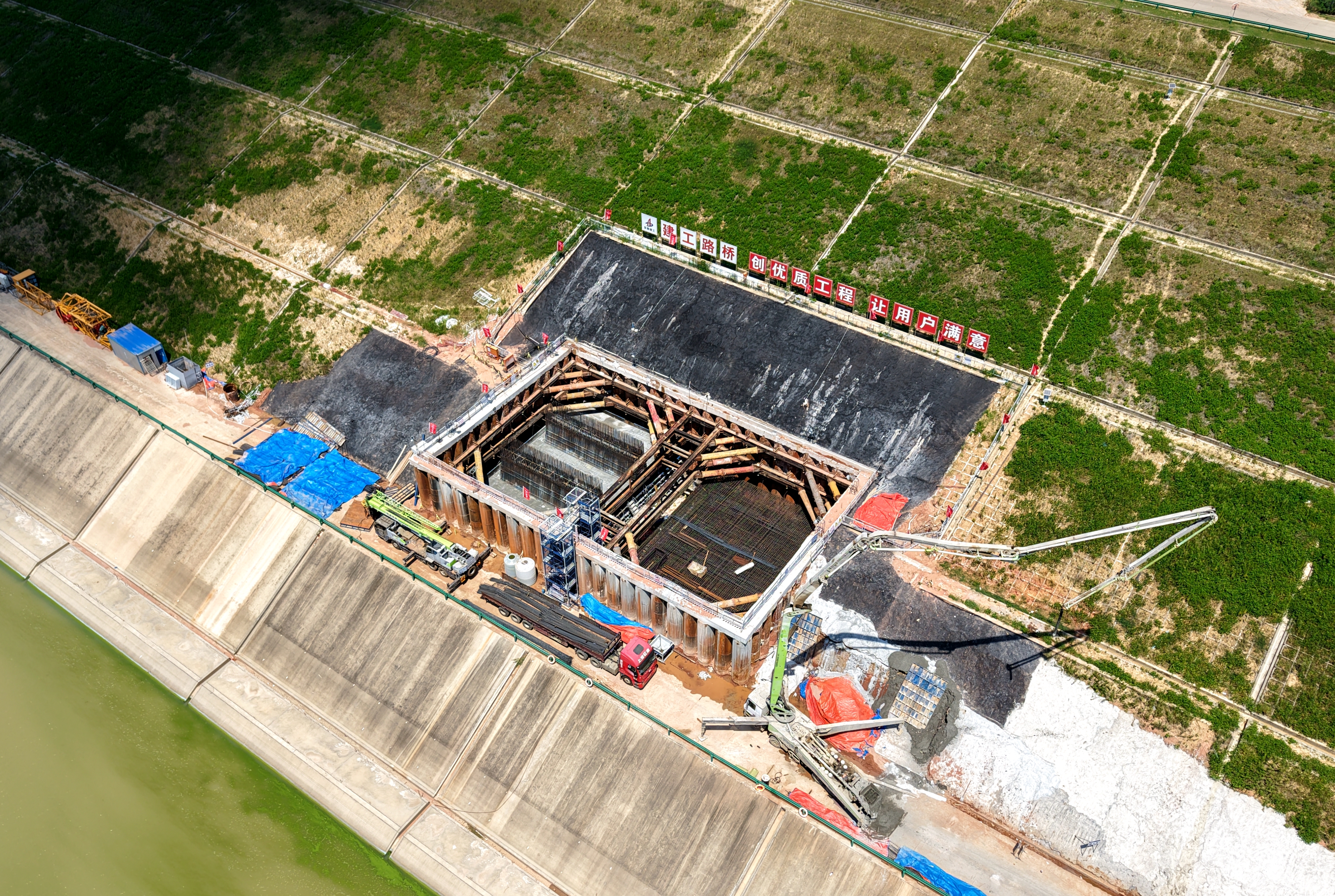【路橋“競(jìng)”行時(shí)】淮桐高速合肥段路基2標(biāo)引江濟(jì)淮特大橋首個(gè)主墩承臺(tái)完成澆筑