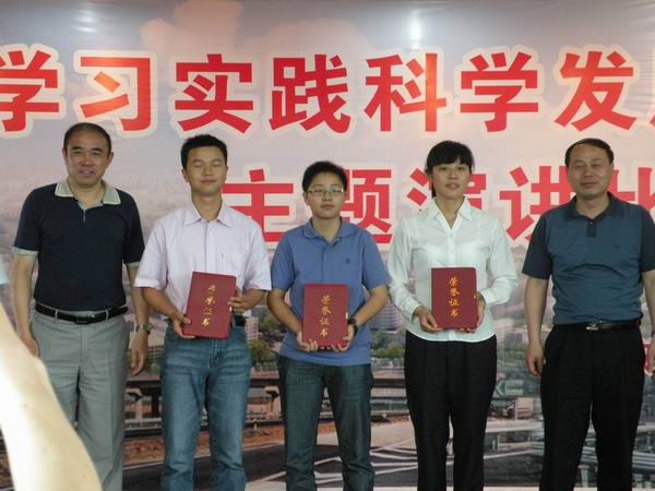 公司參加集團(tuán)科學(xué)發(fā)展觀活動主題演講比賽獲佳績 發(fā)布時(shí)間:2009年05月20日 來源: 發(fā)布人: 作者: 瀏覽:5498次 5月11日下午,安徽建工集團(tuán)公司學(xué)習(xí)實(shí)踐科學(xué)發(fā)展觀活動主題演講比賽在公司七樓會議室舉行,公司員工王晨晨、程德國兩位同志都取得三等獎的好成績。