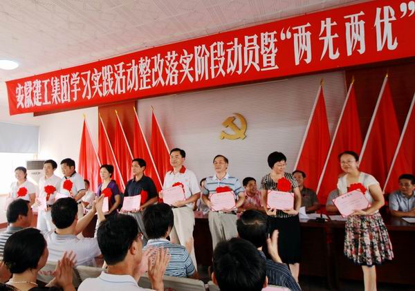 721下午3點(diǎn)半,安徽建工集團(tuán)公司在三建公司五樓會(huì)議召開學(xué)習(xí)實(shí)踐活動(dòng)整改落實(shí)階段動(dòng)員暨“兩先兩優(yōu)”表彰大會(huì),我公司榮獲一批先進(jìn)稱號(hào),會(huì)上,獲得先進(jìn)稱號(hào)的集體和個(gè)人受到了表彰。