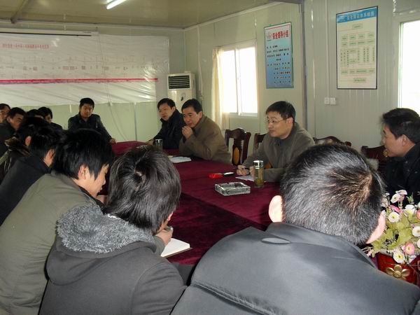 311上午,汪總在項(xiàng)目部會(huì)議室召開(kāi)會(huì)議,會(huì)議由項(xiàng)目經(jīng)理杜海峰主持。會(huì)上杜經(jīng)理對(duì)項(xiàng)目施工目前還存在的一些問(wèn)題進(jìn)行了自查自糾。接著是汪總發(fā)表了重要講話。汪總首先讓大家介紹自己,還特別關(guān)心了年輕的技術(shù)員們,仔細(xì)記下每個(gè)人的名字。隨后汪總充分肯定了項(xiàng)目部去年各方面的工作情況,并且指出泗許項(xiàng)目是公司在2009年承接的第一個(gè)項(xiàng)目,公司各界領(lǐng)導(dǎo)非常重視。同時(shí)也充分肯定了項(xiàng)目經(jīng)理杜海峰的工作。接著,汪總對(duì)我們項(xiàng)目的工程建設(shè)提出了幾點(diǎn)要求: