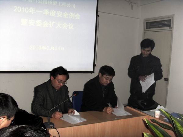 首先,安全生產(chǎn)管理部傳達(dá)了集團(tuán)公司2009年四季度安委會(huì)擴(kuò)大會(huì)議精神及《安委會(huì)議事規(guī)則》,安委會(huì)成員討論了公司《項(xiàng)目安全管理責(zé)任考核暫行辦法》及《2010年公司安全管理工作計(jì)劃》。