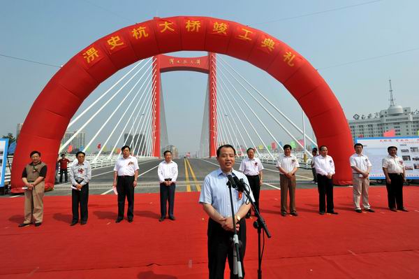 531上午,備受社會(huì)各界關(guān)注的六安市淠史杭大橋工程舉行竣工通車典禮。六安市委書記、市人大常委會(huì)主任湯林祥,市委副書記、市長(zhǎng)張韶春作了重要講話,市政府副市長(zhǎng)鐘園主持通車典禮。公司領(lǐng)導(dǎo)攜項(xiàng)目全體員工參加了典禮。公司總經(jīng)理汪衛(wèi)東代表參建單位做了發(fā)言。